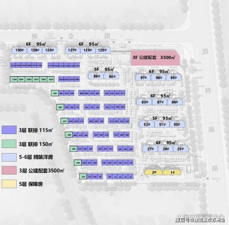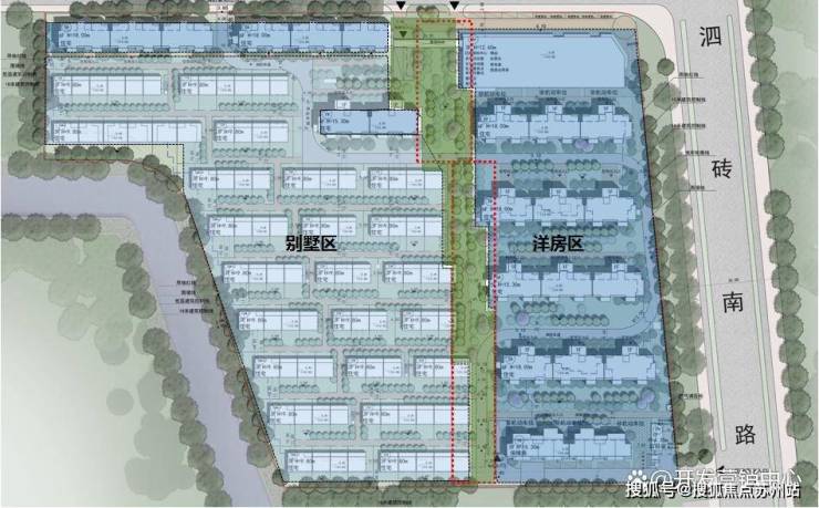总占地:约 3.4 万㎡,总建面约 3.7 万㎡,容积率仅 1.1(洞泾镇最低),绿化率 35%,建筑密度 25%,规划 7 栋 5-6 层电梯洋房及 23 栋 3 层联排别墅,总户数 325 户,车位比 1:1.3(人车分流)。